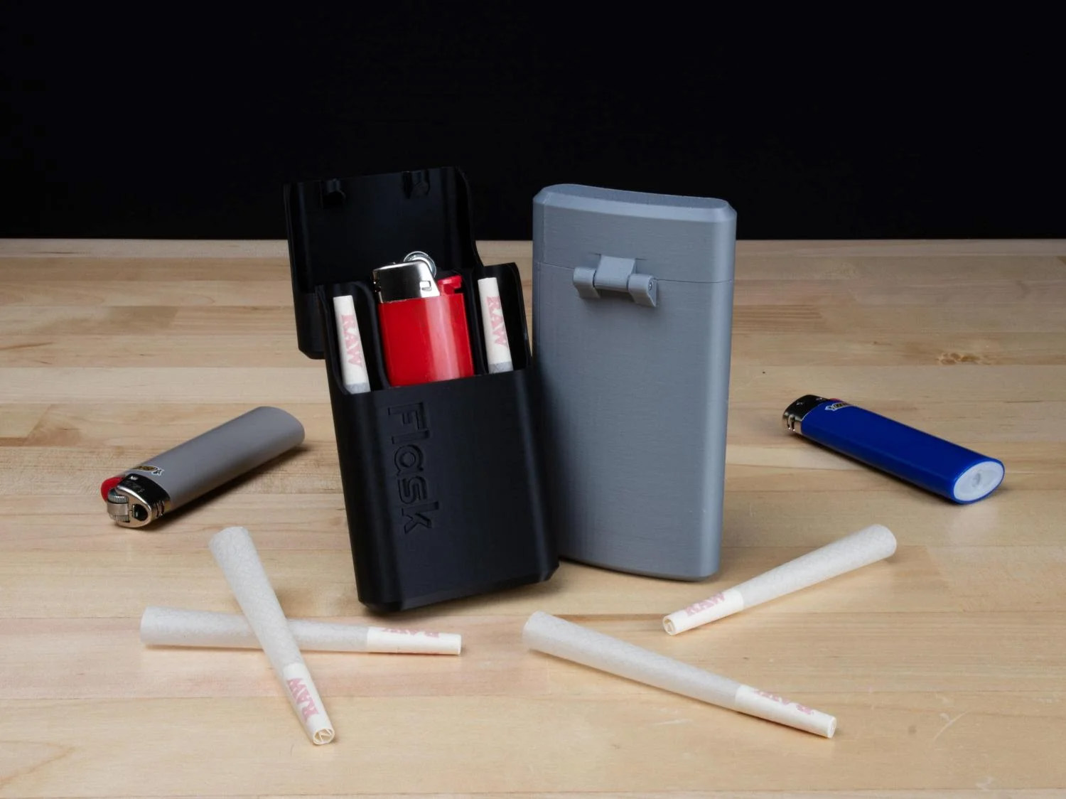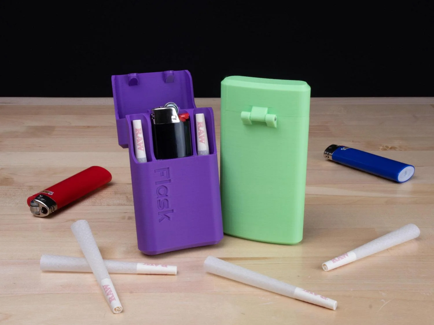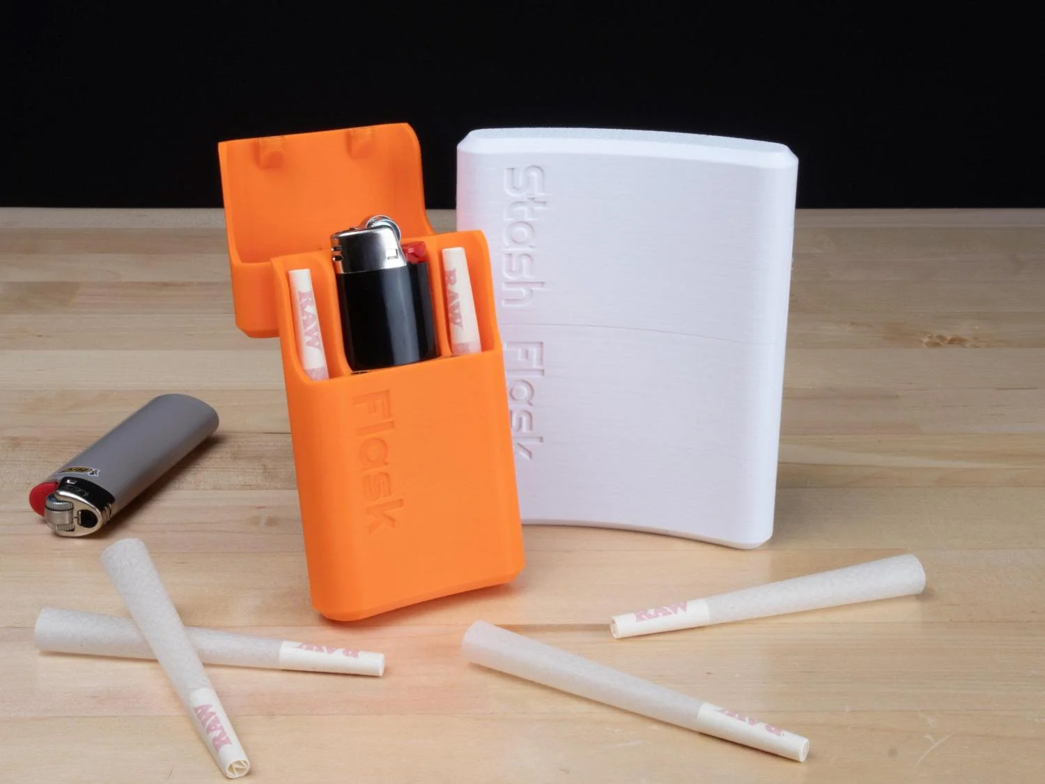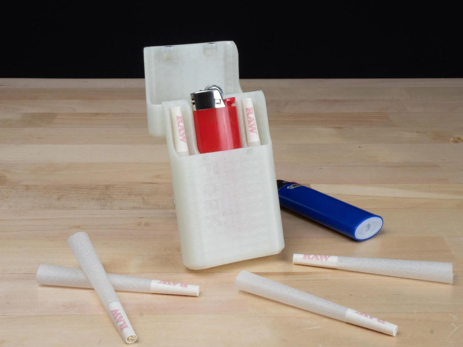 Features: - Securely holds 2 or 4 extra-large pre-rolled cigarettes (or smaller) - Features a Bic lighter slot (standard size) - Magnetic lid with hinge - Stylish bottle design for easy pocket storage - Available in multiple colors - Designed by professional engineers - Made with the highest quality 3D printed parts