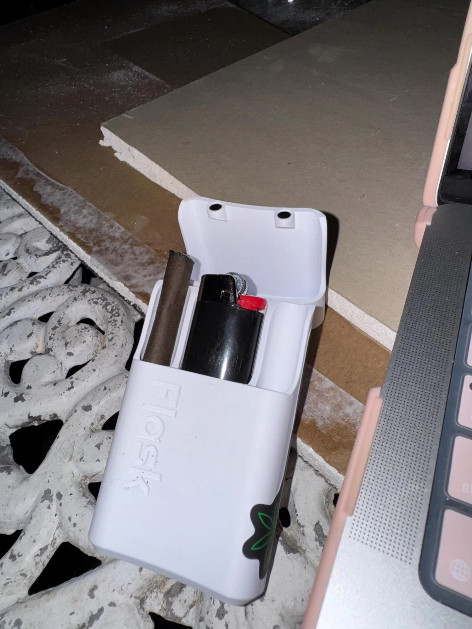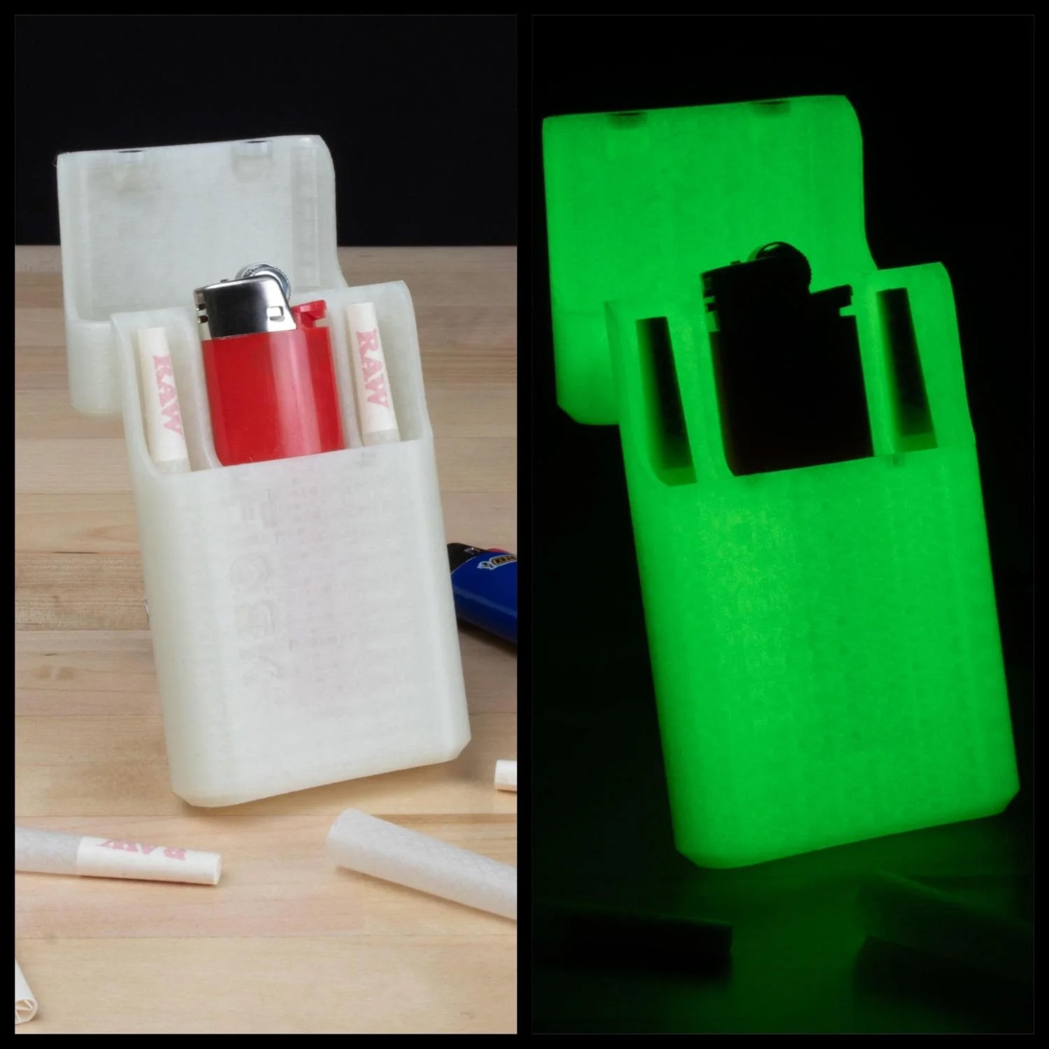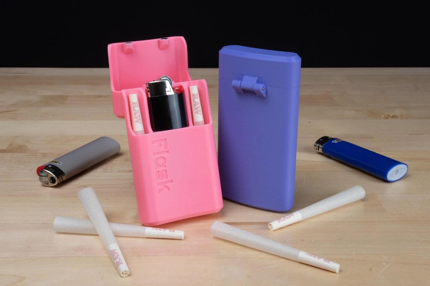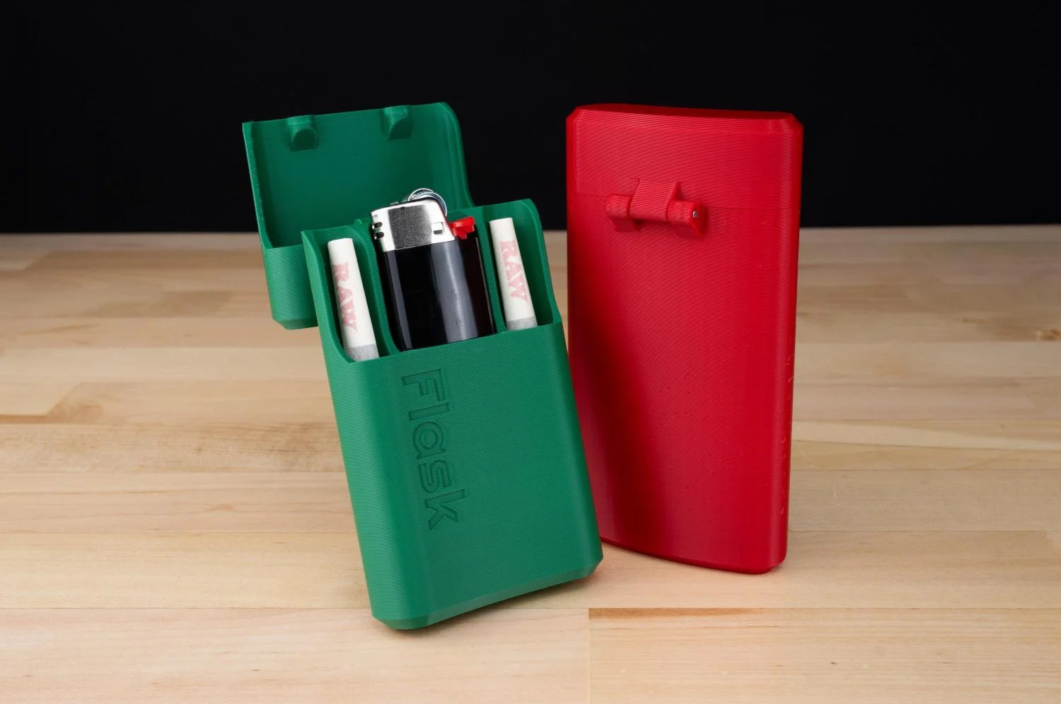 Features: - Securely holds 2 or 4 extra-large pre-rolled cigarettes (or smaller) - Features a Bic lighter slot (standard size) - Magnetic lid with hinge - Stylish bottle design for easy pocket storage - Available in multiple colors - Designed by professional engineers - Made with the highest quality 3D printed parts